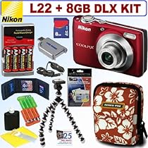 Make memories and share joy with Nikon's new high-resolution Coolpix L22 and its 12.0 effective megapixels, 3.6x zoom and huge, bright 3.0-inch LCD. Nikon's 3-way VR Image Stabilization System automatically detects subject movement and adjusts the shutter speed and ISO to compensate for camera shake and minimize image blur. The camera's Easy Auto Mode with Scene Auto Selector simplifies your picture-taking experience by letting camera automatically select the best setting to get great pictures. Nikon's Smart Portrait System will; fix red-eye, detect faces, fire the shutter when your subject smiles and warn you if they blink, to get you great portraits.++PLUS++ 8GB Deluxe Accessory Kit: 8 Gigabyte SDHC Secure Digital Memory Card - Secure Digital USB Memory Card Reader - Universal Memory Card Wallet - 4 High Capacity AA Nimh 2900 Mah Rechargeable Batteries - AC/DC Rapid Battery Charger - 8 Slot Battery Tube Case - Well Padded Camera Carrying Case w/Pocket & Strap - Lens care & Cleaning Kit - Package of LCD Screen Protectors - Flexible Gripster Portable Camera Tripod; Flexible joints bend and rotate 360-degrees to form the perfect shape - BONUS!! FREE 25 Quality Prints (promo code# on invoice).